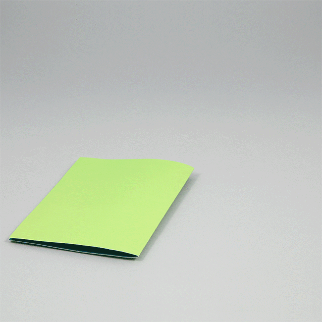 ⑥ ⑤で角度をつけずに貼ると、台紙を開いたときに、紙が立たないので気をつけましょう。