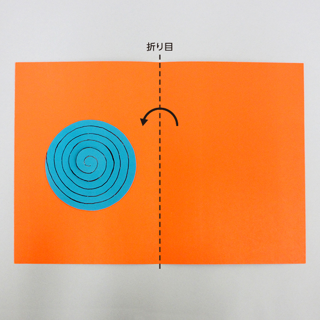 ⑦ 1度台紙を閉じ、しっかりと折り目をつけます。