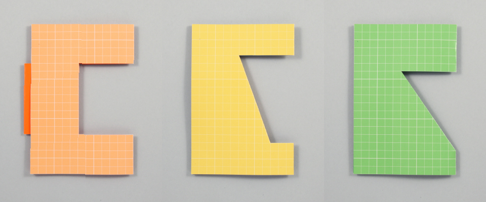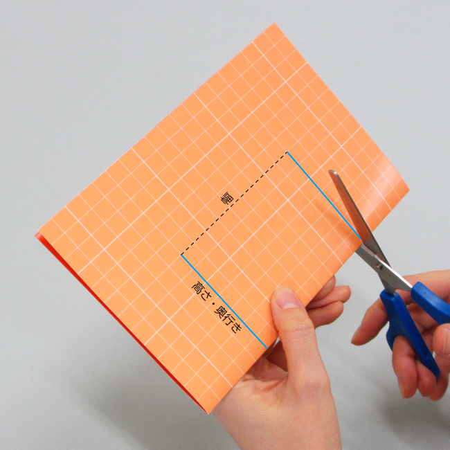 ① カラー方眼紙から図のような形を切り取ります。