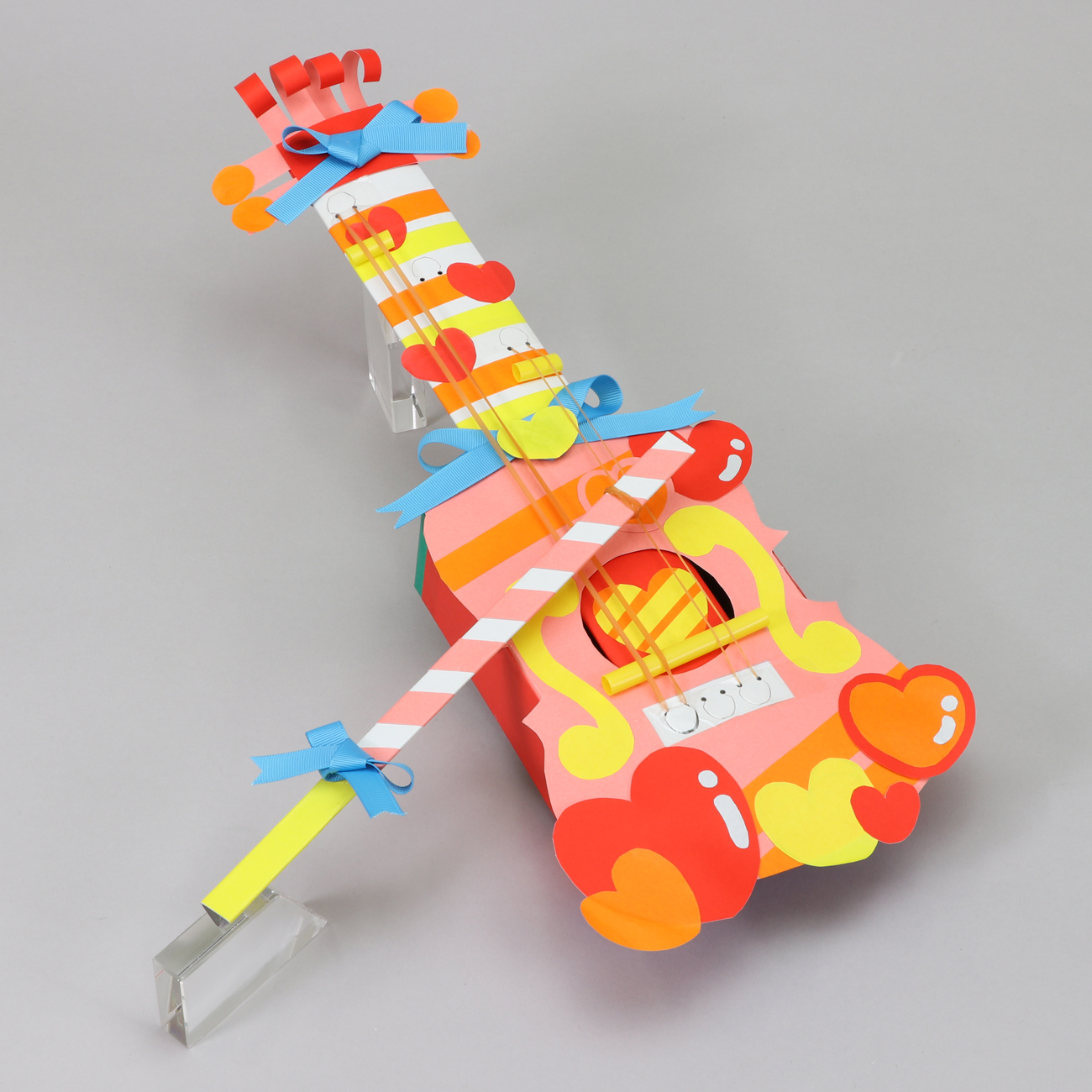 楽しそうに歌うキリンをイメージした作品です。ギターのネック部分をキリンの長い首に見立てました。