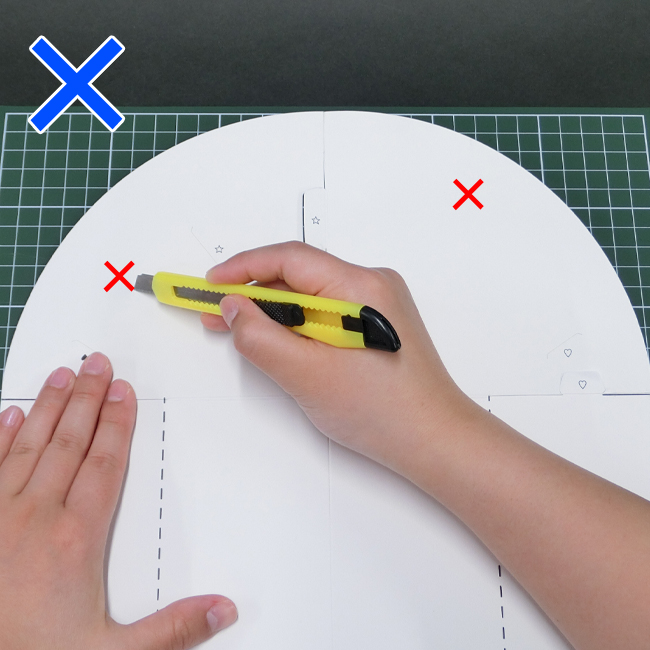 ×印を2カ所とも土台の天井部分につくってしまうと、透明カプセルをつり下げたときに土台のバランスが崩れることがあります。