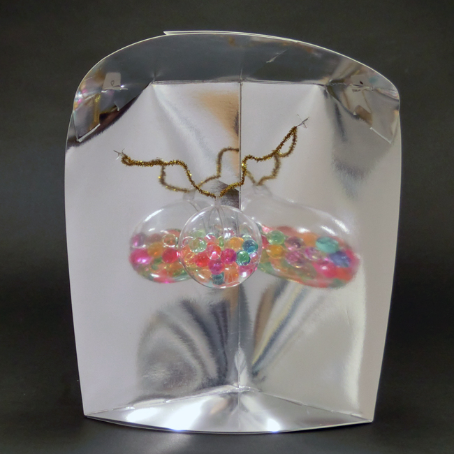 ④土台の後ろ側に出たモールを折り、セロハンテープで止めます。