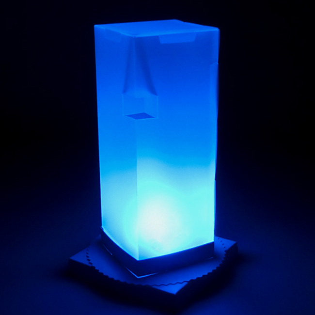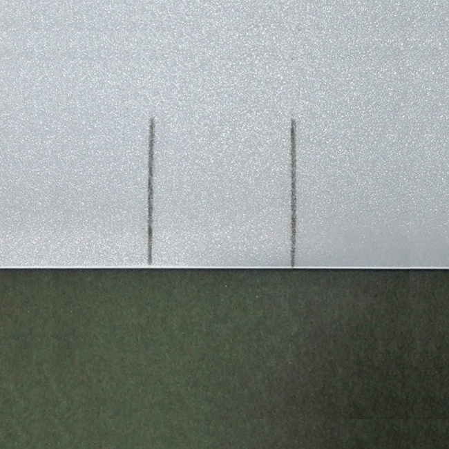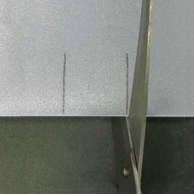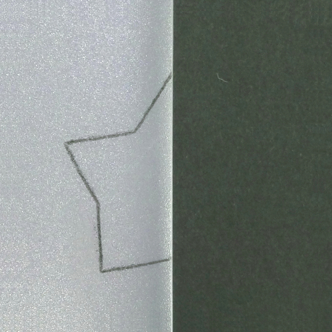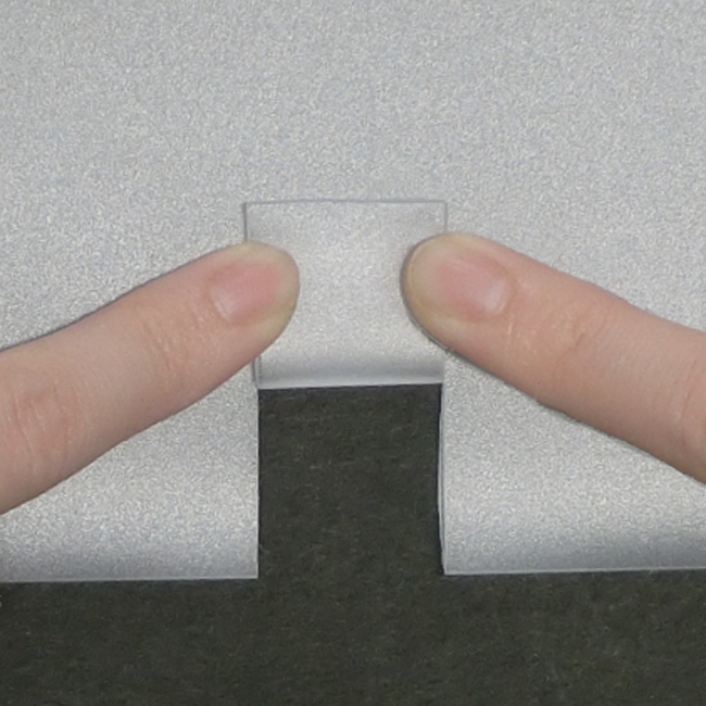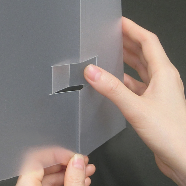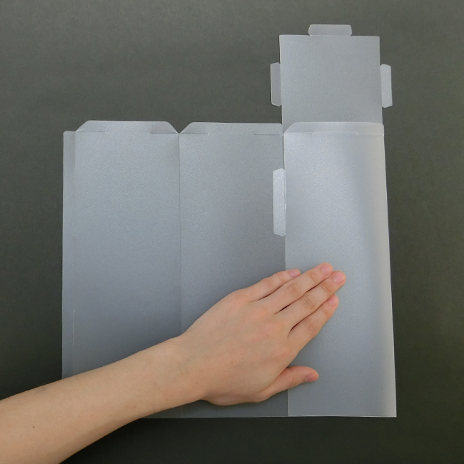 透明シェード板を線にそって折りたたみ、二面が重なるようにします。下描きをするとき、ツメのある辺には描かないようにしましょう。