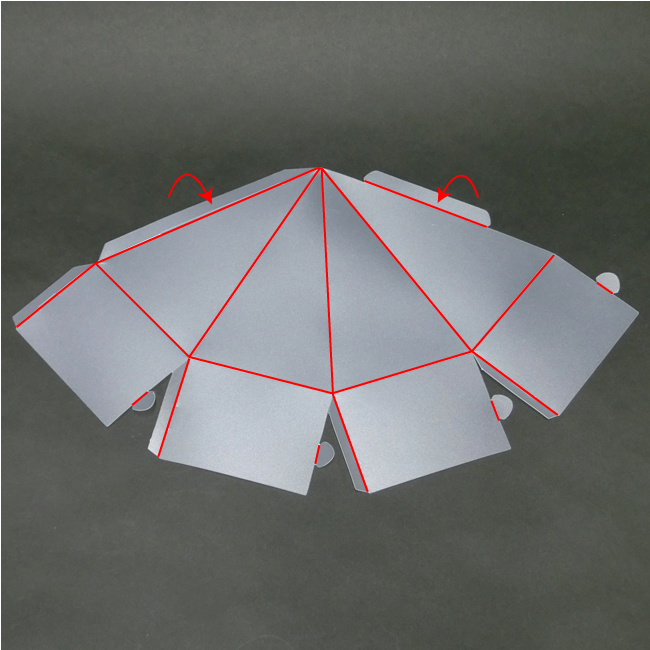 ②それぞれしっかりと折り目をつけます。