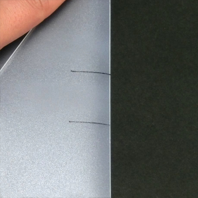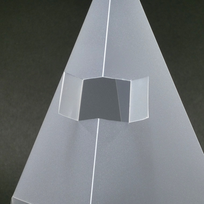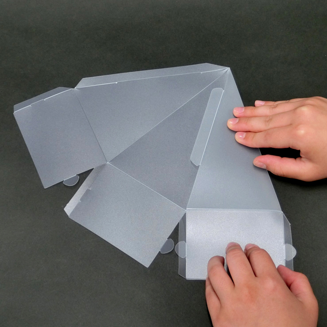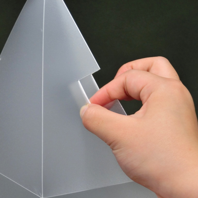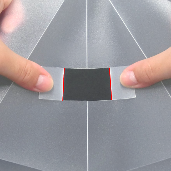 透明シェード板を線にそって折りたたみ、二面が重なるようにします。