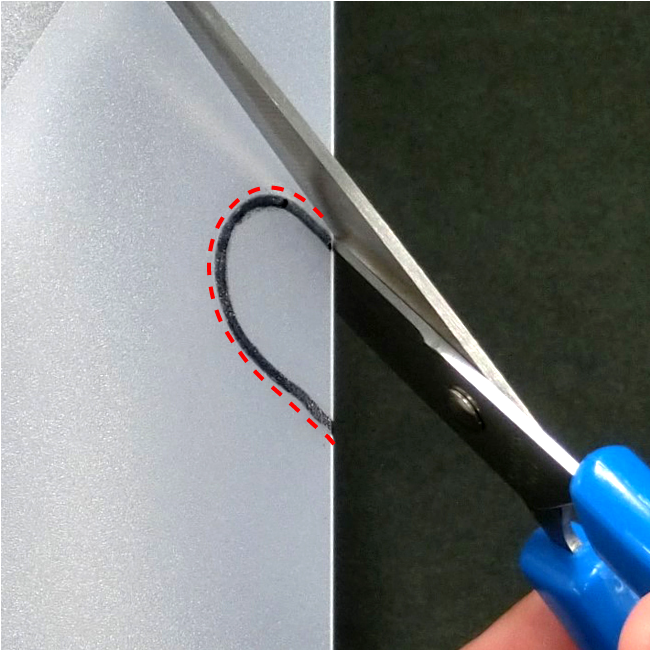 ②線の外側にそって切ります。切るときは、はさみの刃の奥を使います。