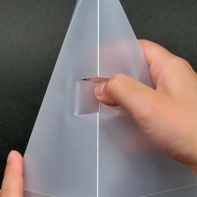 ③切った窓を表側から折り返して、しっかりと折り目をつけます。