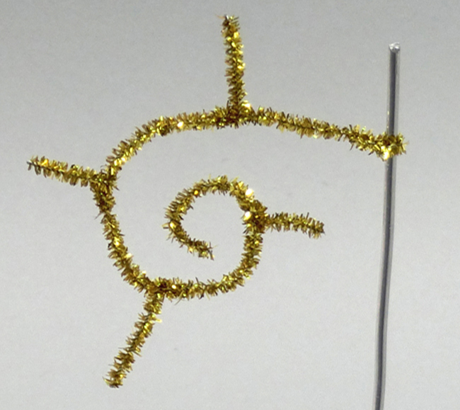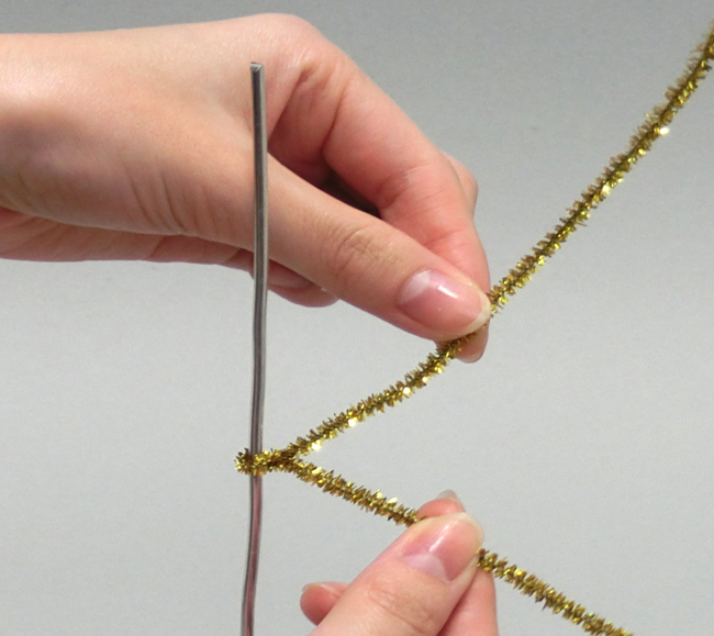 ②モールを半分に折ってV字をつくり、用意した型の図の部分に置きます。