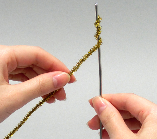②モールの端をねじってつなぎ、輪をつくります。型の5角を囲うくらいの大きさにしましょう。