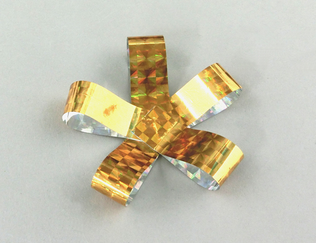 ①ホログラムシートを細長く切ります。長いものを2本、中くらいのものを2本、短いものを1本切りましょう。