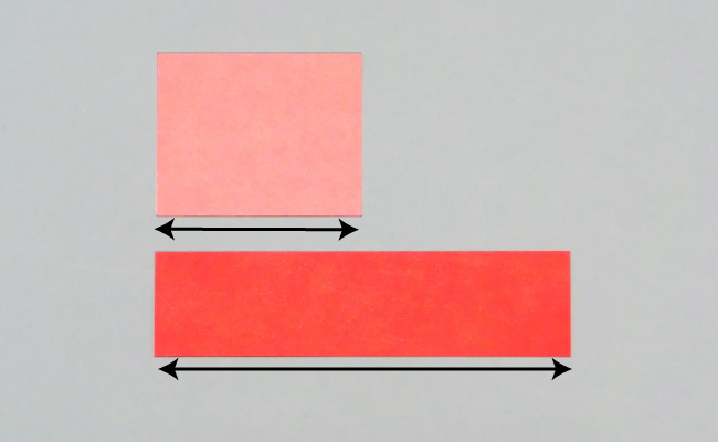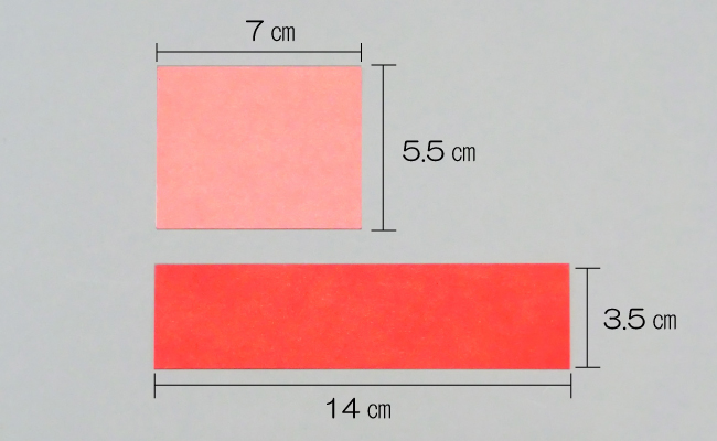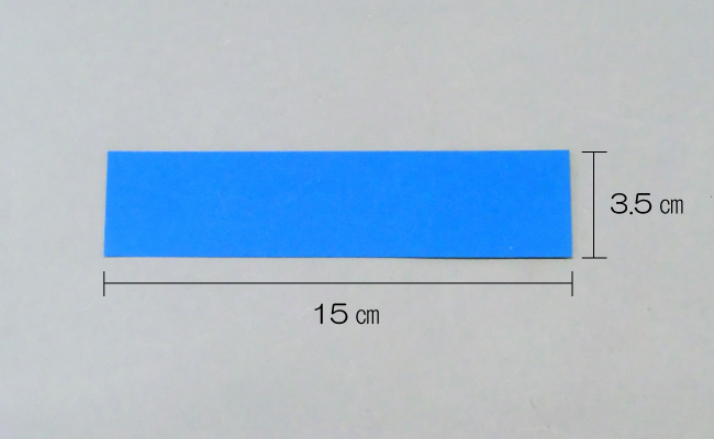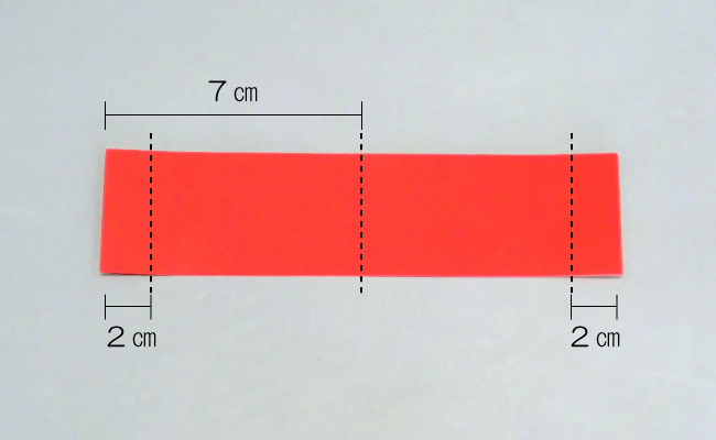 ②長く切ったカラーフォーメーションの両端から2cmのところと中央に折り目をつけます。