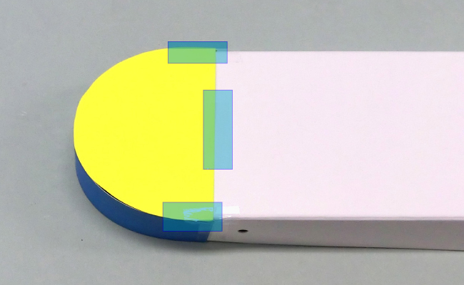 ④貼りつけた紙の形を短く切ったカラーフォーメーションに描き写します。