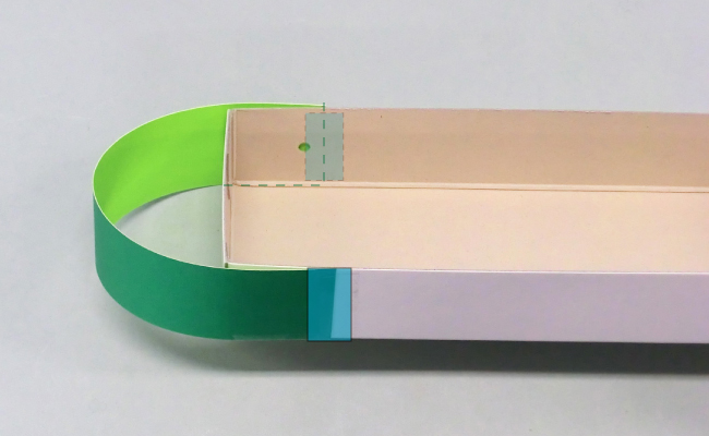 ②のりしろの部分をのりで貼り合わせます。