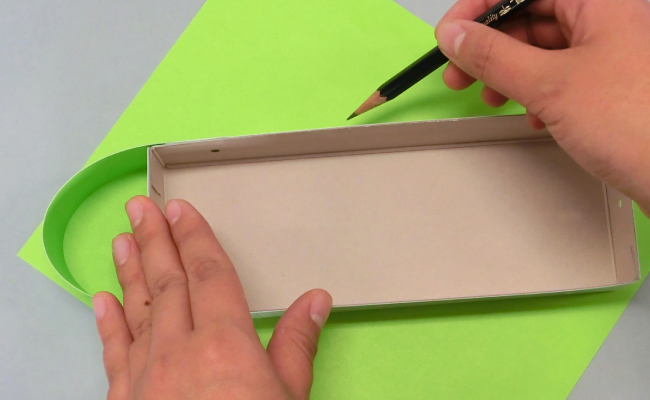④描き写した形に切り、箱にのせます。