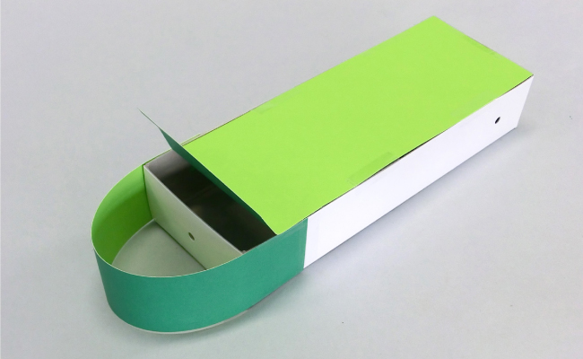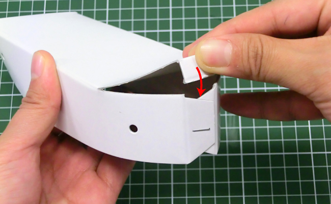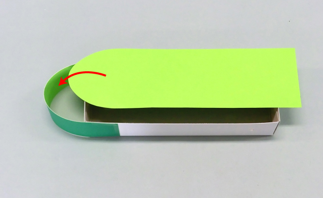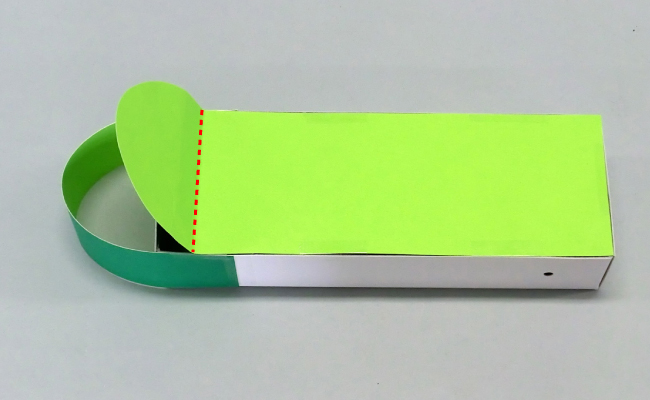 ⑥四角く残しておいた部分を箱の内側に折り込みます。