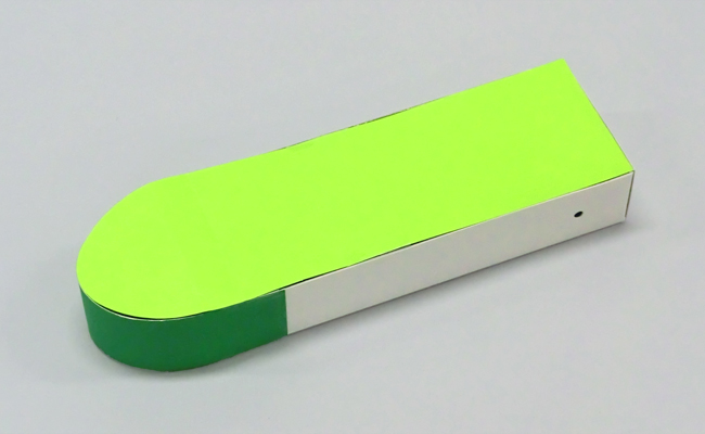 先をセロハンテープでとめずに折り目をつけると、口の開いた形をつくることができます。