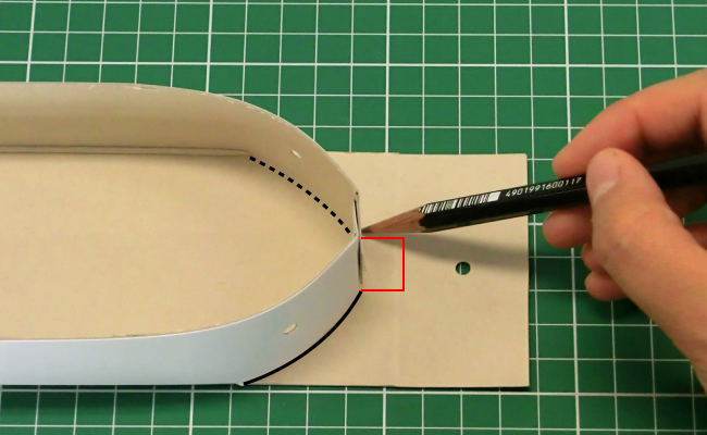 ①台紙の赤線の部分に4cmの切り込みを入れます。