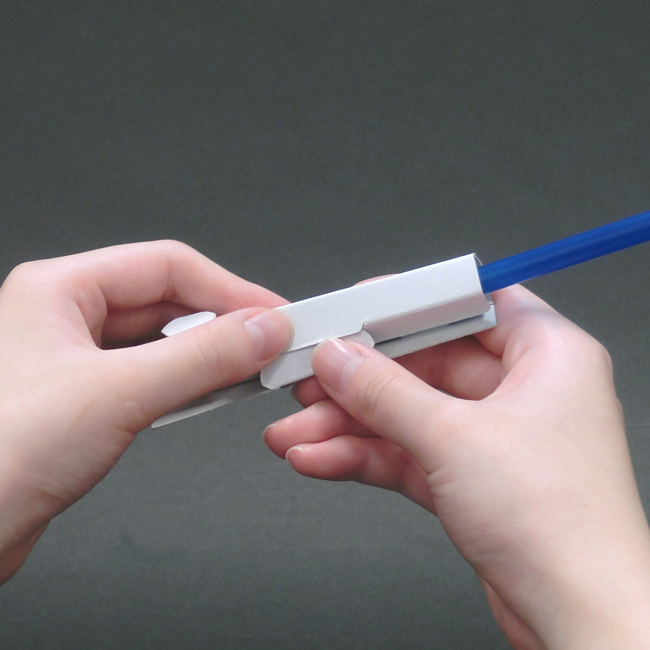 ④裏返して、反対の面の突起を切り込みにさし込みます。