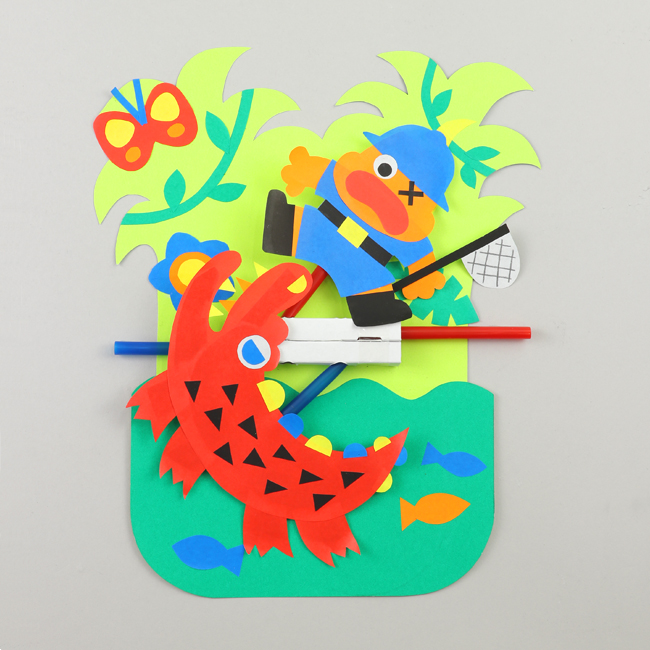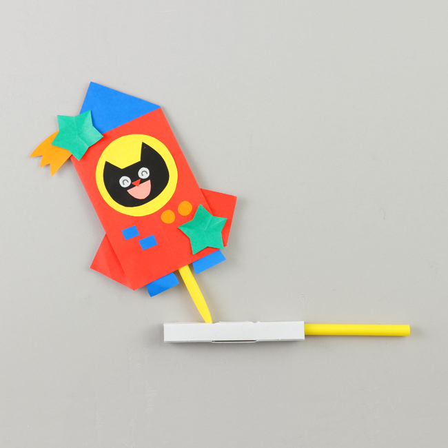 穴を2つあけて、ストローを2本使うと、両側から動かす事ができます。