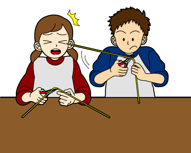 長い針金を扱うときは、針金の先が自分や他の人を傷つけないように注意しましょう。