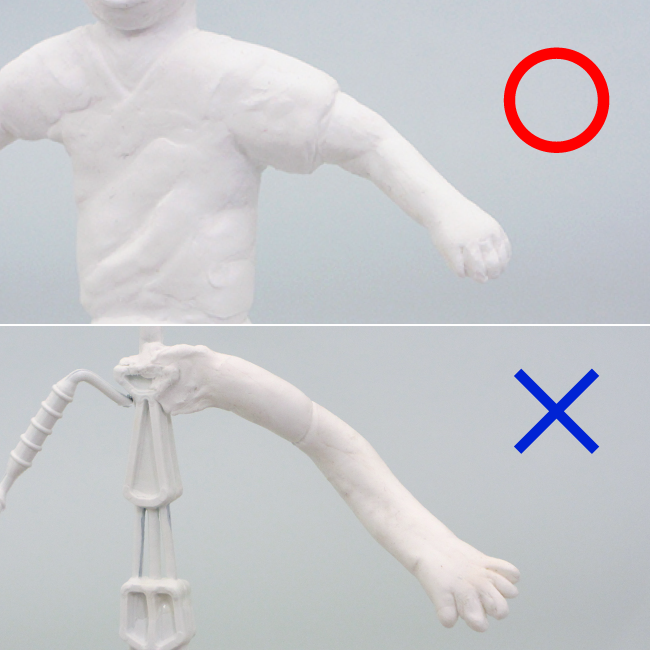 服を着ている部分の方が太くなるようにします。