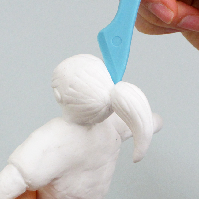 ねんどベラを使って凹凸をつけると、髪の毛などの表情や模様をつけることができます。