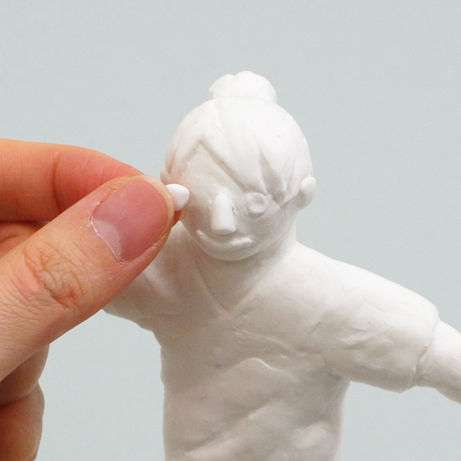 手足の形に表情をつけたり、服や髪の毛など肉付けをしていきましょう。