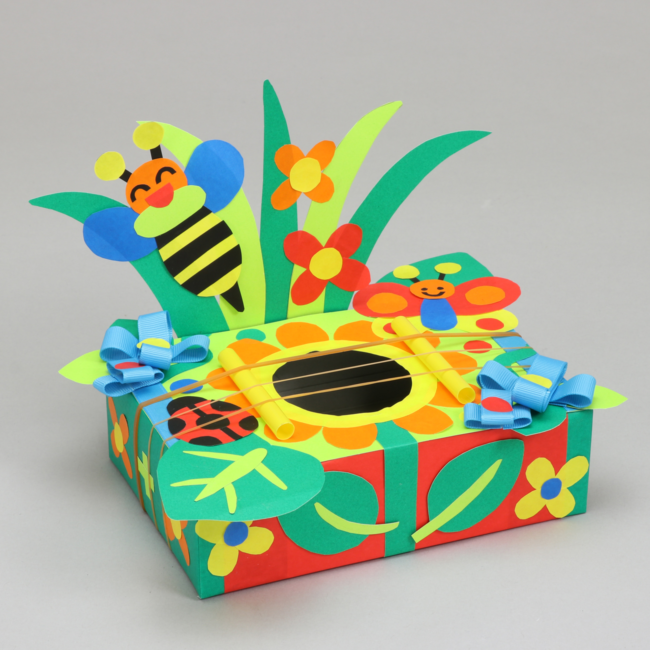 楽器の色や形、飾りのつくり方を工夫して自分だけの楽器ができたら、他の人と一緒に楽しく演奏しましょう。