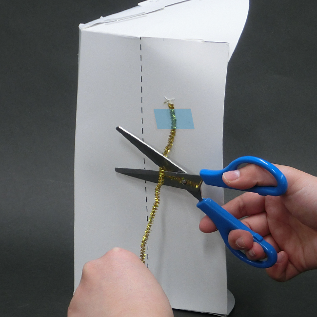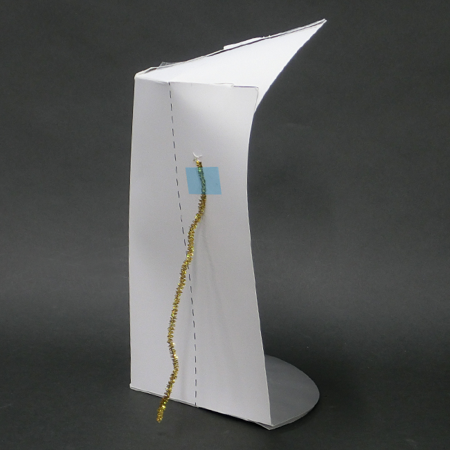 ④土台の後ろ側に出たモールを折り、セロハンテープで止めます。