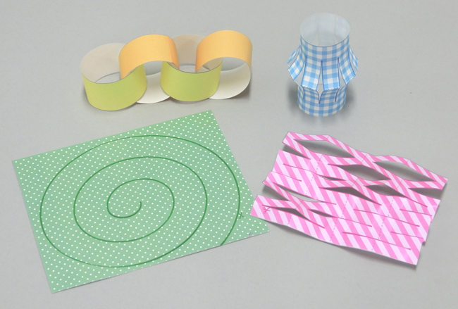 練習紙の切り方を参考にしながら、いろいろな飾りをつくりましょう。