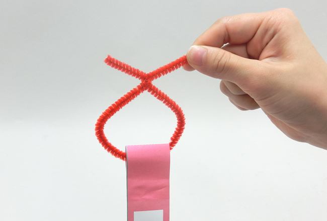 モールを通し、作品を貼りつけて飾りましょう。