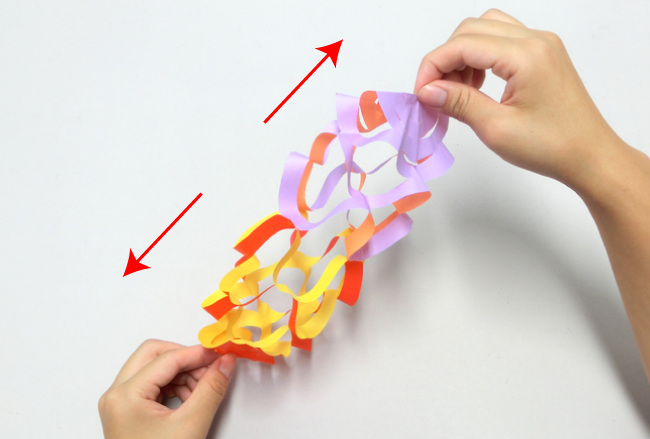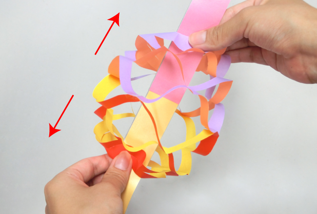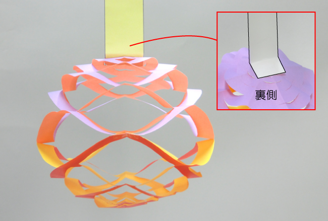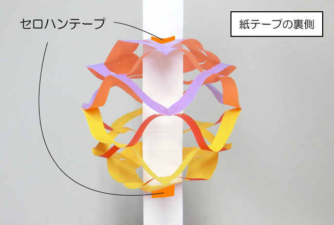 ⑥かごをのばしたまま、上下をそれぞれ紙テープの裏側からセロハンテープで固定します。