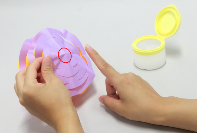 ⑩上にする面の中心にのりをつけます。