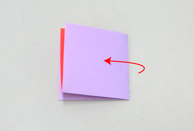 ②2枚まとめて、2つ折りにします。