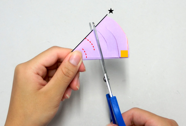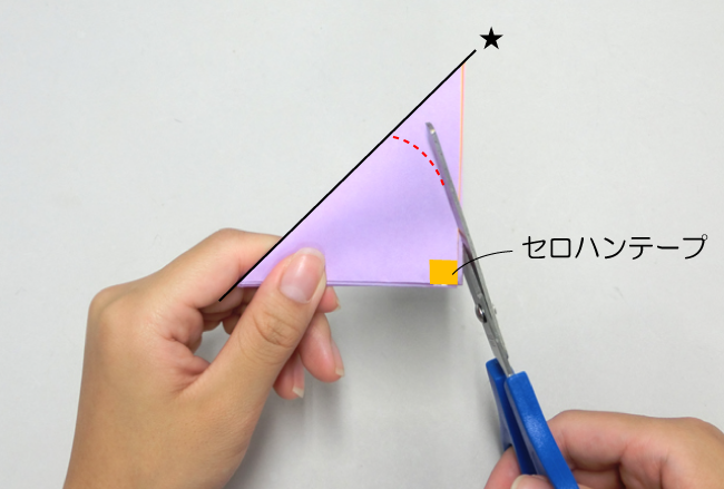 ⑤セロハンテープを切らないように気をつけながら、角を丸く切ります。