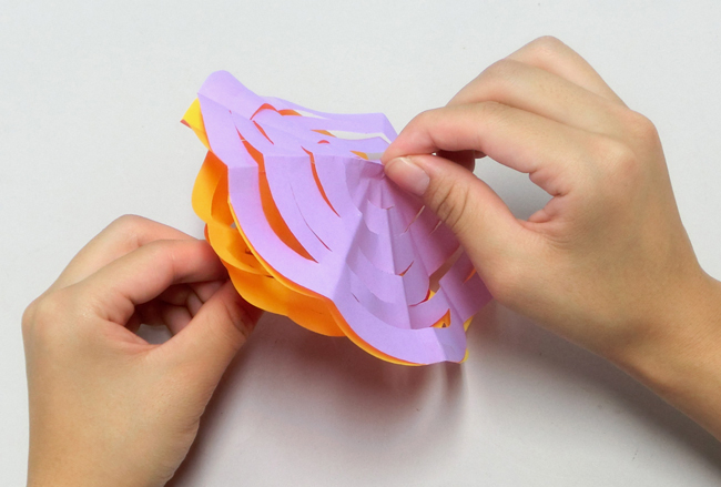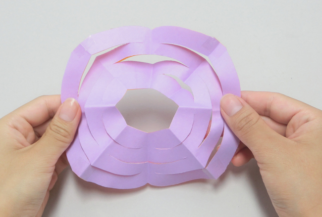⑥上下から交互に切り込みを入れます。この時、端に合わせて曲線を描くように切るときれいに見えます。