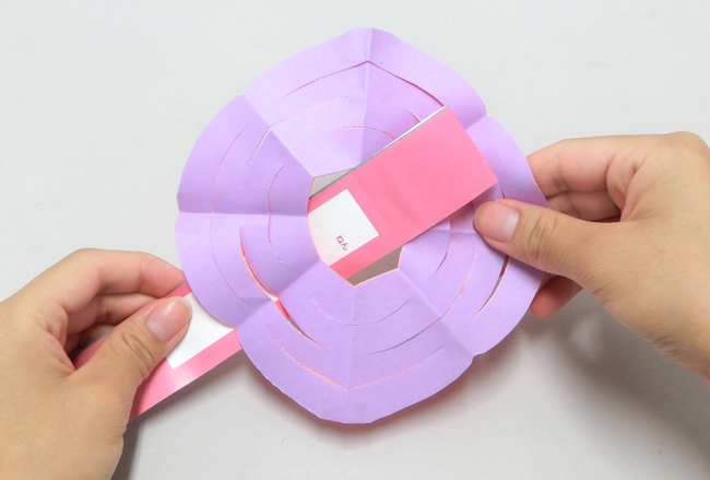 ⑪紙テープの先を少し折り曲げ、貼りつけて完成です。