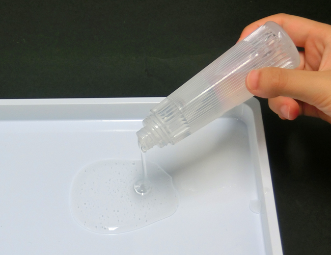 ①トレイなどに水で薄めたせんたくのりを入れます。