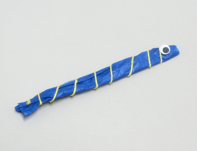 ②端をとめ、かざりつけることで生き物の模様にすることができます。
