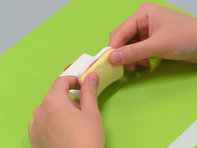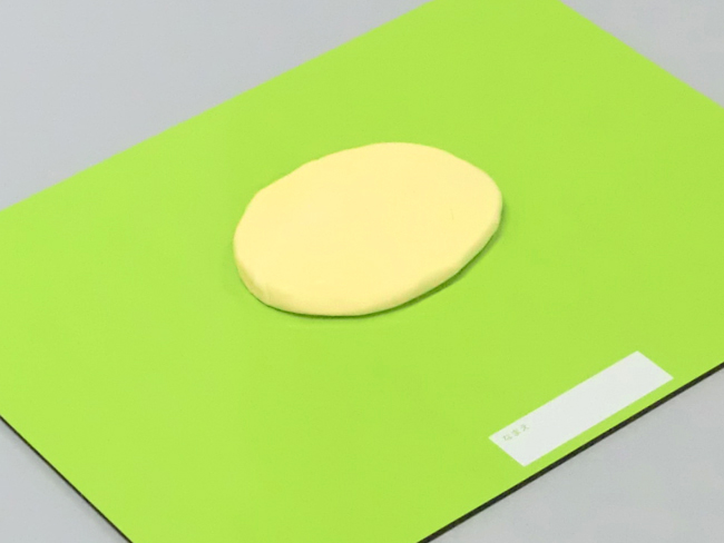 ①薄黄色のねんどを厚さ1cmほどにのばします。