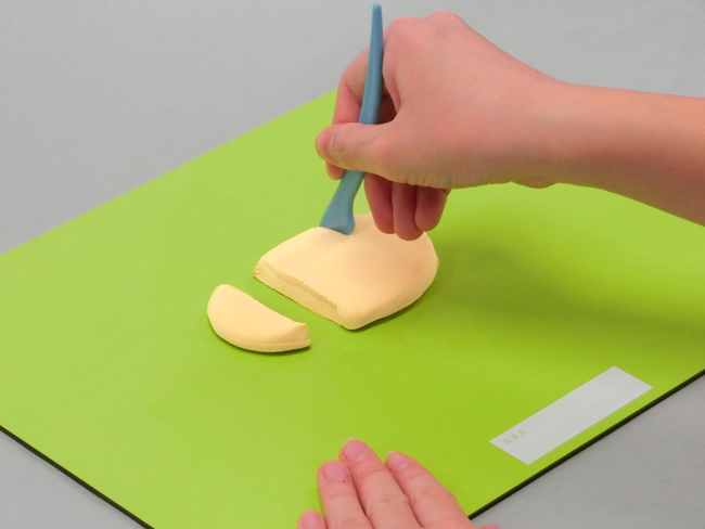 ②ねんどベラを使って、長方形をつくります。