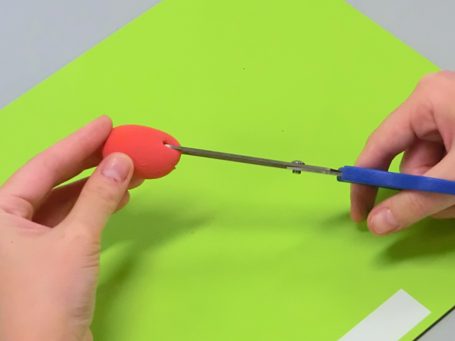 ねんどにはさみの先を使って切り込みを入れます。
