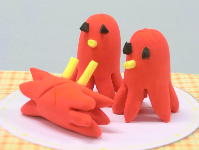 色の違うねんどを重ねると、いろどりのある作品をつくることができます。