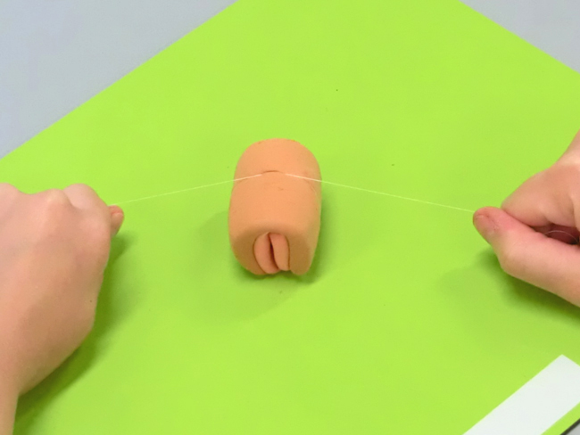 ・細くのばしたねんどを切る
