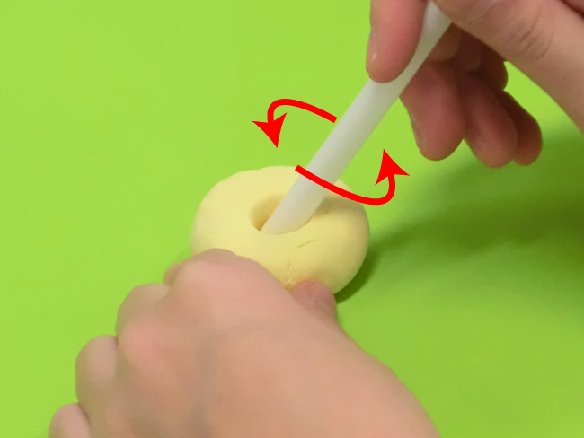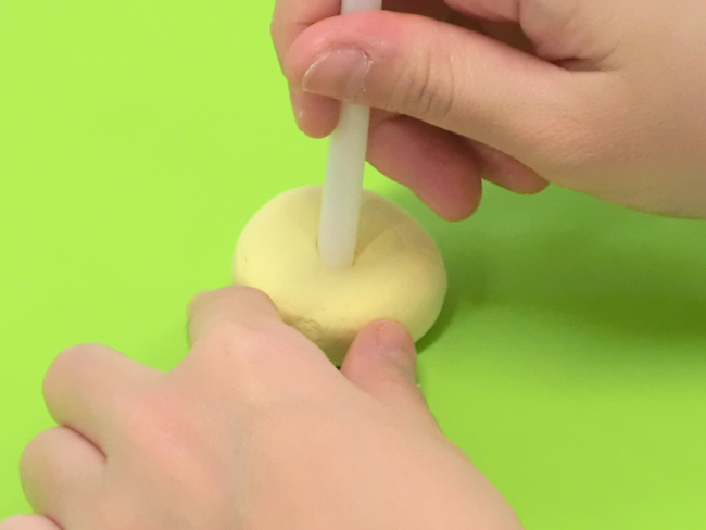 ①ねんどにストローをさして穴をあけます。