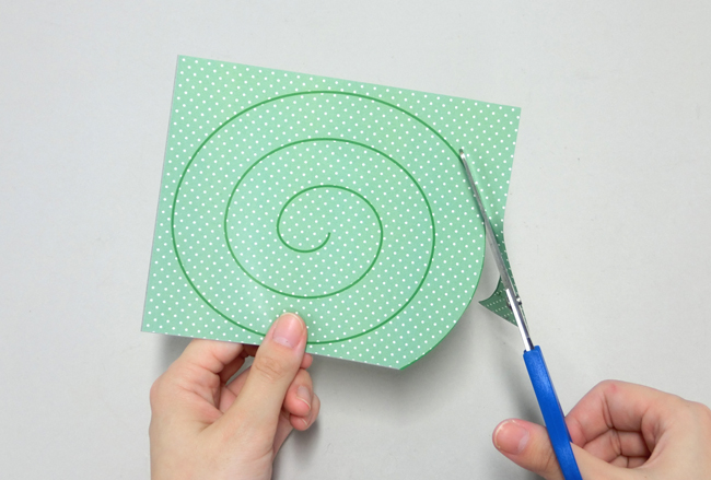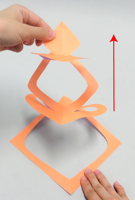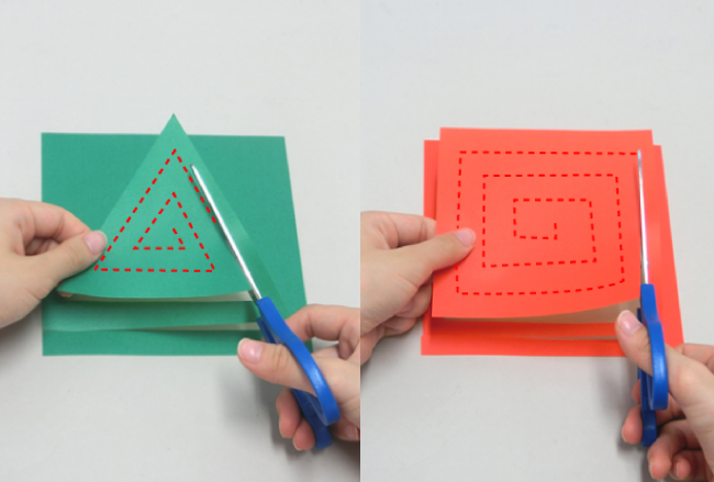※三角や四角のうず巻き状に切っても、のびる飾りをつくることができます。