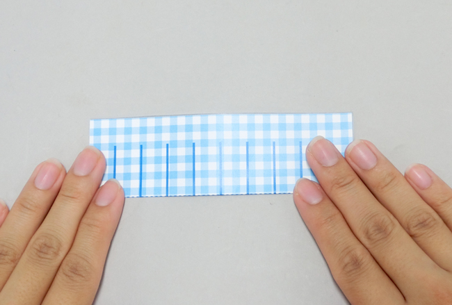 ②折り目の側から、同じ長さに切り込みを入れます。