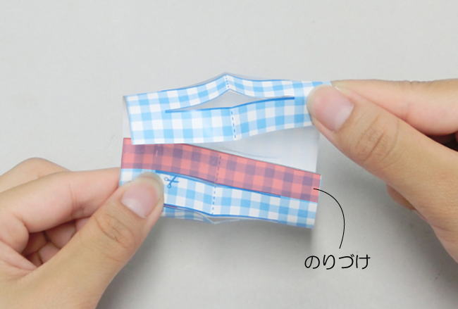 ④紙を開いて丸め、両端をのりで貼り合わせます。