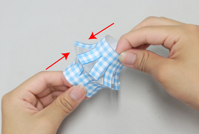 ⑤上下を軽くつぶすようにして、ふくらみを出します。