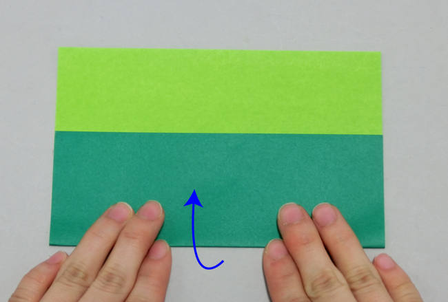 ①色がみを下側から3分の1ほどの位置で折ります。